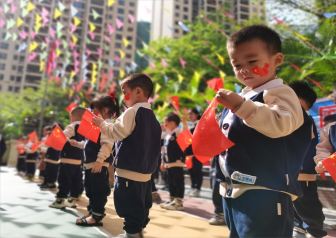 为了让幼儿了解国庆节的意义,感受国庆节隆重、庄严的节日气氛,萌发幼儿热爱祖国的情感,幼儿园开展了“我与祖国妈妈同生日”迎国庆的主题教育系列活动。