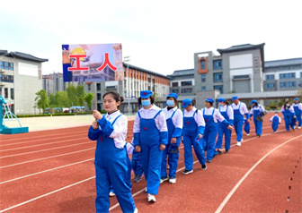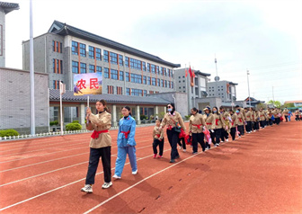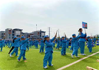 五星红旗飘扬在湛蓝的天空中,那片红属于你,那些闪亮的星星属于你。现场全体人员肃立,向国旗庄严致敬。踏着春天的脚步,踩着春天的节拍,老师、家长和宝贝们身着工、农、兵三式服装,在激昂的音乐中迈着整齐的步伐拉开了热闹欢快的革命大生产活动序幕。