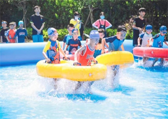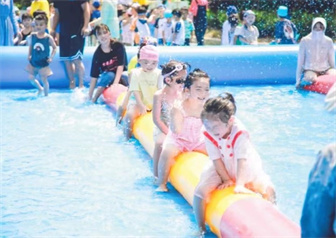 欢笑声、尖叫声、音乐声此起彼伏,在这炎炎的夏日,构成了一曲美妙的嬉水交响乐,象征“快乐”的泡泡不仅带来了夏天美好的祝福,也让小宝贝在快乐游戏中健康成长!
